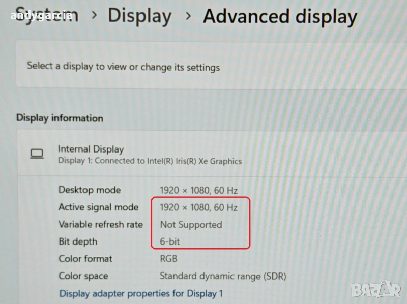 Видео карта : Intel Iris Xe Graphics (споделена памет)