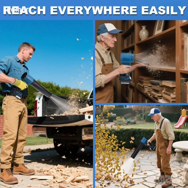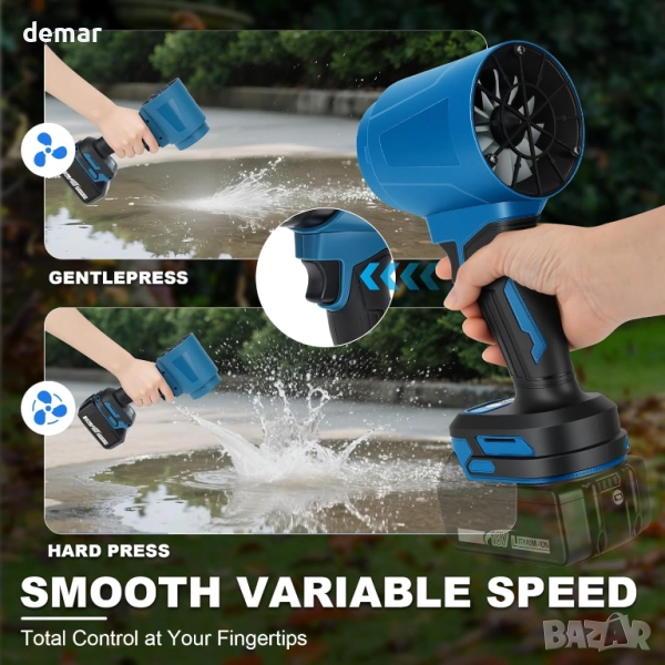 духалка за листа осигурява мощна турбо струя от 1,8 кг с въздушен поток от 200 мили в час, за да почиства мокри листа, отломки и прах от тревни площи, вътрешни дворове, алеи и автомобили. С тегло само 500 грама, тя е ултралека с противоплъзгаща се дръжка за удобна употреба без умора. Удължената дюза фокусира въздушния поток за прецизно почистване или сушене на автомобили, а безжичният ѝ дизайн осигурява лесно движение в тесни пространства. Съвместима с литиево-йонни батерии Makita 18V (не са включени), тя предлага безопасна и ефективна работа. Комплектът включва тяло на духалката, удължителна дюза и тапи за уши за защита от шум и допълнително удобство.