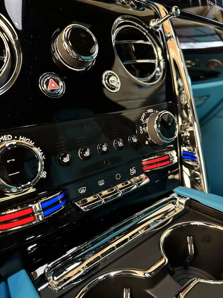 Tiffany основен тюркоазен тон, комбиниран с черни и сиви акценти Sciavo Grey. Таблото, вратите, седалките и централната конзола са изработени от фина кожа с контрастни черни шевове и RR монограми върху подглавниците. Разширен кожен таван със светещ ефект Shooting Star Headliner създава неповторима атмосфера. Салонът предлага индивидуални задни седалки с фиксирана централна конзола, масажна функция отпред и отзад, вентилация и отопление на предните седалки, както и отопляем заден сектор. Декорът е изпълнен в Piano Black (висок гланц) с осветено табло (Illuminated Fascia) и разширени дървени апликации. Воланът е двутонален, удебелен, Tiffany, а осветените прагове носят гравюра Cullinan. Оборудването включва Driving Assistant, Parking Assistant Plus, Keyless Entry, задна мултимедия (Rear Theatre Configuration), Picknick Tables, висококачествена аудио система Rolls-Royce Bespoke Audio и универсален отваряч за гаражни врати. Допълнително: затъмнени задни стъкла (Privacy Glass), килими от агнешка вълна (Lambswool) и пакет Polished Stainless Steel с акценти от полиран неръждаем стомана. АВТОКЪЩА ЕASY CAR предлага още: Възможност за доставка на автомобил по поръчка; замяна на автомобил; съдействие при регистрация и изваждане на транзитни(временни) номера; сключване на застраховки гражданска отговорност, автокаско и автоасистанс. За повече информация, моля свържете се с нас на телефон: 0882300300 или 0888725656. Виж всички обяви в easycar. bazar. bg easycar. mobile. bg We speak Greek, English, Italian, Deutsch