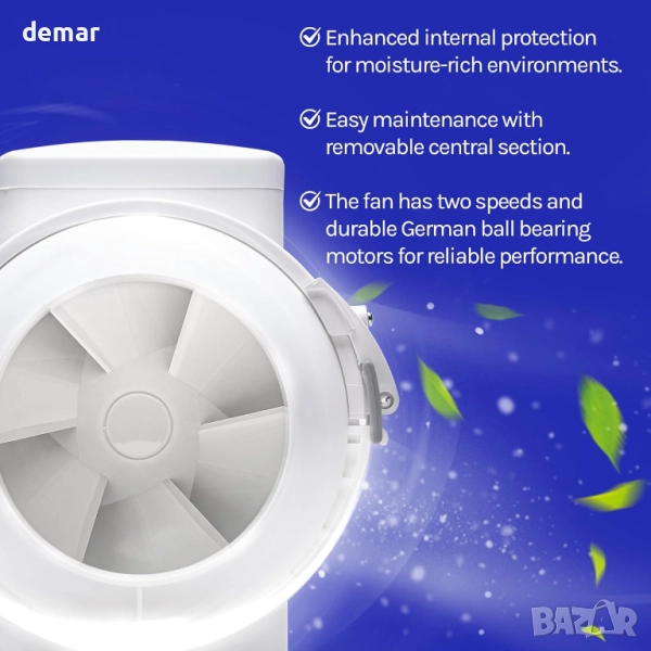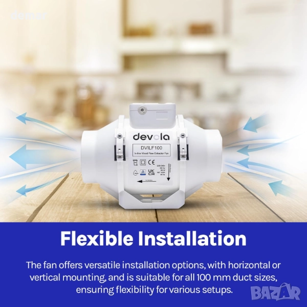 Devola 100 мм вграден вентилатор за смесен поток, за кухня, баня - DVILF100