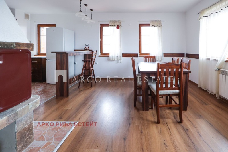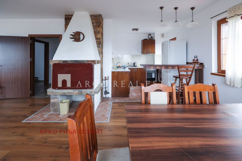 Първи и втори етаж: по две спални, две бани с тоалетна, голяма всекидневна с кухня и трапезария, както и панорамна тераса с гледка към планината.