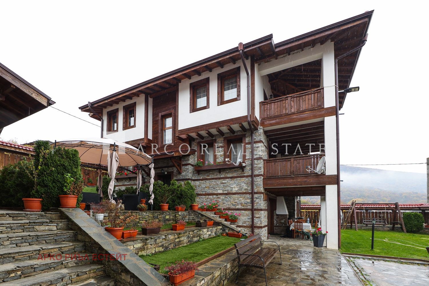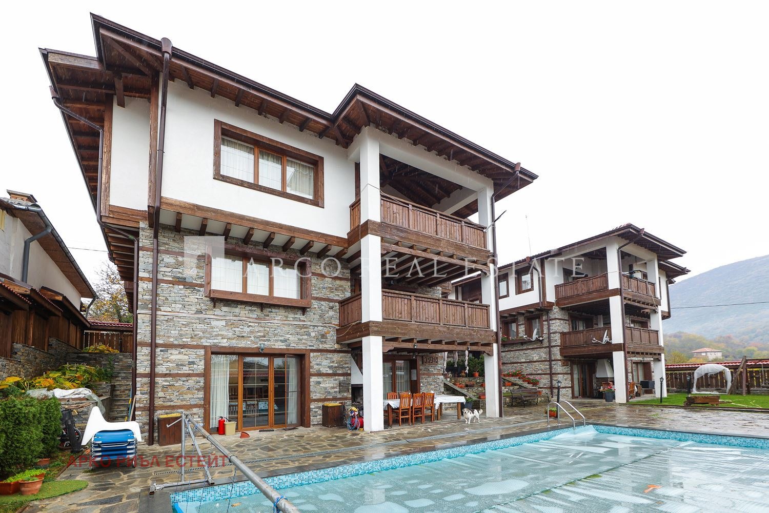 ARCO REAL ESTATE представя изключителен имот две напълно обзаведени триетажни къщи за гости с басейн и СПА зона, разположени в живописното с. Илинден, общ. Хаджидимово, обл. Благоевград.
