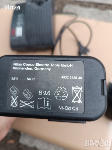 Акумулаторен винтоверт Атлас Копко 9.6 волта с две батерии и зарядно.Работи отлично.