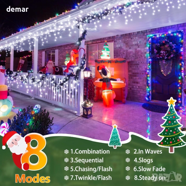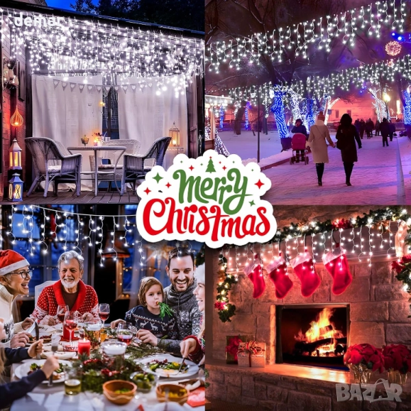 Тези ярки 320 LED лампички тип „ледулки“ са с дължина 10 метра, 60 висулки и 3-метров удължителен кабел. Те включват прозрачни проводници, които се сливат безпроблемно с околната среда за изчистен, декоративен вид. Предлагайки 8 режима на осветление, включително постоянно, мигащо и преследващо, те създават топла, романтична атмосфера за Коледа, сватби или партита. С вграден чип с памет и таймер (6 часа включено, 18 часа изключено), те запомнят последната ви настройка и работят автоматично. Водоустойчивостта IP44 гарантира надеждна работа при дъжд, сняг или студ, а CE сертификацията гарантира безопасна и хладна работа. Лесни за инсталиране и подходящи както за вътрешна, така и за външна употреба, те са идеални за декориране на покриви, огради, балкони, вътрешни дворове и градини.
