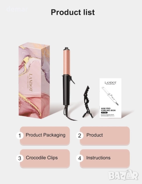 LANDOT Мини маша за коса 25 мм, бързо нагряване, 110-240V, регулируема температура