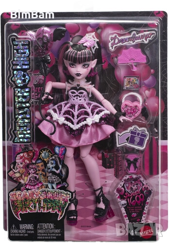 Дракулора има зашеметяваща визия, която е изпипана до най-малкия детайл и ще грабне вниманието на всеки. Тя е облечена в празнична рокля, обсипана с различни аксесоари, носи стилни черни ръкавици и обувки на висок ток, а косата ѝ е хваната две опашки. Аксесоарите в комплекта включват чанта, ветрило, бижута, празничен балон във формата на сърце и други. Те са прекрасно допълнение към визията на куклата и с тях играта ще бъде още по-вълнуваща. Тя също така има подвижни стави, което позволява на децата да я поставят в най-различни пози.
