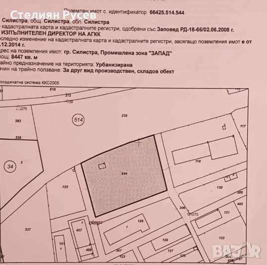ПИ 66425.514.544 област Силистра, община Силистра, гр. Силистра, Промишлена зона "ЗАПАД"