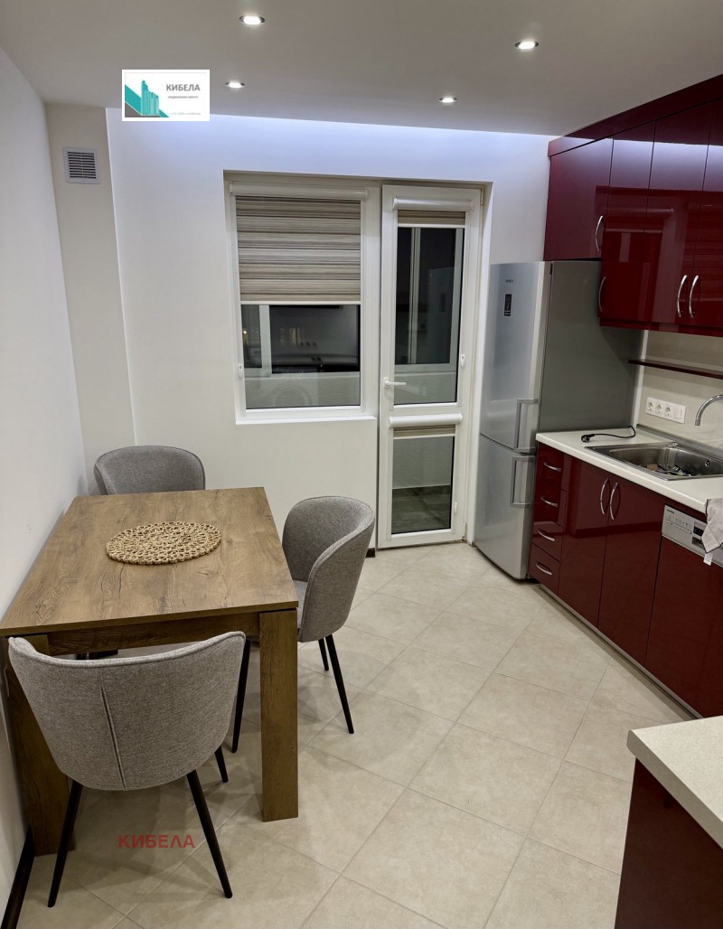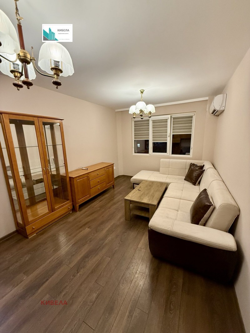 Агенция за недвижими имоти КИБЕЛА предлага на своите клиенти чудесен непреходен двустаен апартамент под наем в района на жк. Стрелбище. Имотът се състои от: хол, отделна кухня - вградена с всички елуреди: хладилник с фризер, фурна, керамичен плот, пералня, миялня, спалня, балкон, коридор и баня с тоалетна. Ситуиран е на 5-ти жилищен етаж в панелен блок. Площта на жилището е 68 кв.м. Има ТЕЦ за топла вода, отопление на климатик, интернет, окабелен, СОТ, външната врата е SOLID. Апартамента е изцяло южен, топъл, вътрешна изолация, включително и на балкон. Поддържан вход.