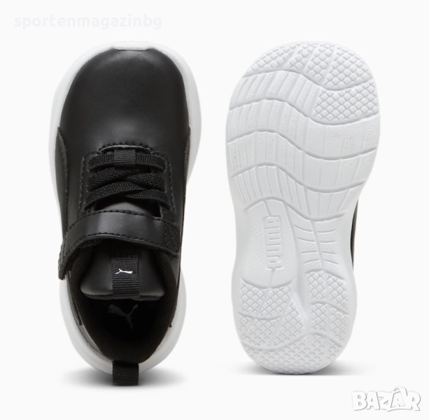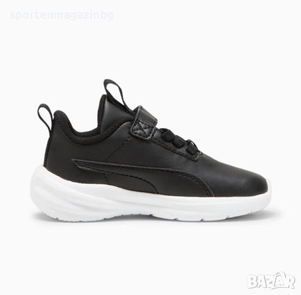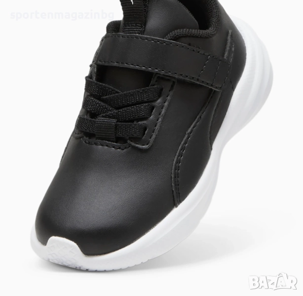 Стабилна конструкция в горната част изработена от висококачествена синтетична кожа. Допълнително подсилени в областта на петата и пръстите. Ластични връзки и велкро лента в горната част за лесно обуване и събуване. Лого Puma върху езика и отзад. PUMA Formstrip от двете страни. Текстилна кука върху езика и в задната част за по лесно обуване. Нисък профил за по-голяма свобода при движение. Вътрешната текстилна част заедно със стелката осигуряват невероятна мекота и комфорт с всяка крачка. Kinder fit стелка осигурява перфектно прилягане. Междинната подметка IMEVA също може да се похвали с чувствително омекотяване, което абсорбира удара и прехвърля енергия обратно към краката с всяка стъпка. Набраздената външна подметка осигурява страхотно сцепление.