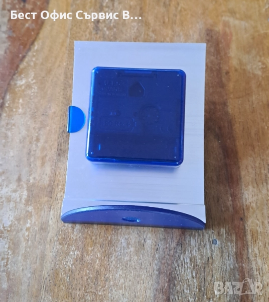Часовникът за бюро е алуминиево-сребрист, със сини пластмасови части. Работи с 1 батерия AA (не е включена). Размер на часовника: височина 11,5 см, циферблат 8,8x10,8 см, размер на основата 8,6x4 см.