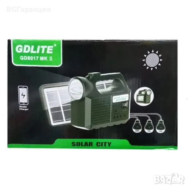 Соларната система GDLITE е компактна и ефективна лампа за външна и аварийна употреба. Идеална за къмпинг, риболов, каравана, офроуд, хижи или при спиране на тока. Системата включва: