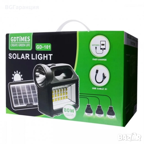 Соларната лампа GDtimes е практично, многофункционално решение за всякакви нужди на открито – къмпинг, риболов, аварийно осветление или домакинска употреба. Съчетава мощен LED прожектор, фенер със странично осветление, соларен панел за зареждане и USB вход за бързо зареждане.