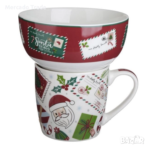 Комплект коледна чаша и купа Mercado Trade, Дядо Коледа, Шарен