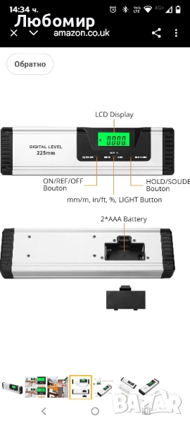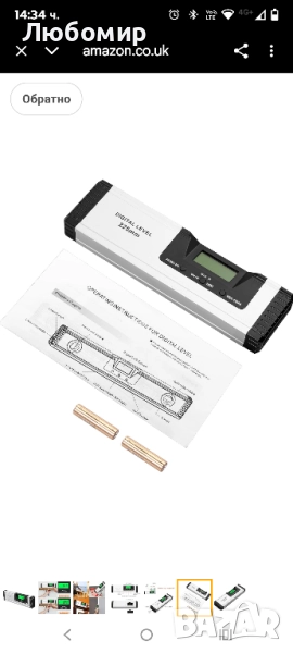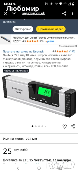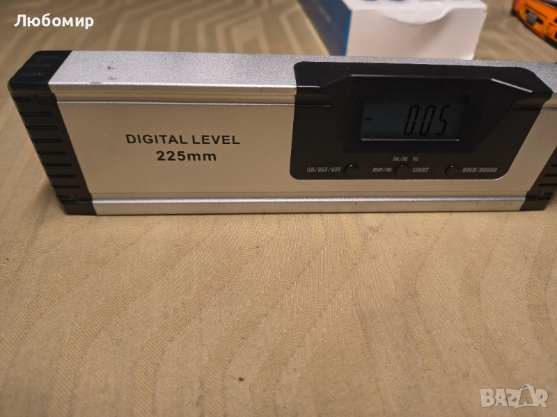 Нов без опаковка.Neoteck 225 мм/10 инча цифров магнитен нивелир със звуков индикатор, алуминиева сплав, цифров нивелир с магнитна основа, измервателни инструменти, ъгломер, голям, ясен LED дисплей.Високоточен цифров нивелир】 4 режима на измерване: измерване на градуси, IN/FT, mm/M стъпка и процент на наклон. Висока точност: точността е +/-0,1° до 0° и 90°, а точността е +/-0,2° до 1-89°. Резолюция: +/-0,01° до 0° и 90°, +/-0,05° под всеки друг ъгъл.