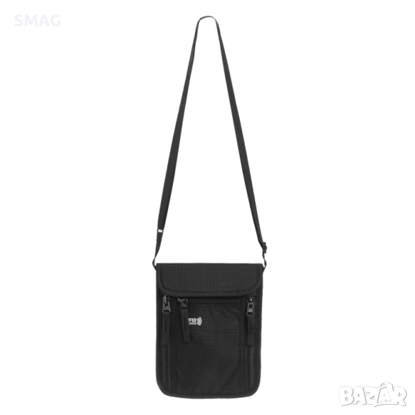 Практична мъжка чанта за рамо с вградена RFID защита, която предпазва банкови карти и документи от неоторизирано сканиране. Разполага с основно отделение с капак и велкро закопчаване, три външни джоба с цип и допълнителни ремъци за закрепване към колан. Подходяща за ежедневна употреба, пътувания и градски условия.