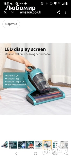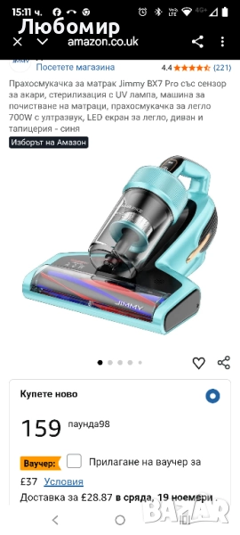 Прахосмукачка за матрак Jimmy BX7 Pro със сензор за акари, стерилизация с UV лампа,