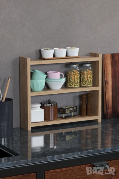 Подреди кухнята си стилно и практично с тази кухненска етажерка за плот с 3 рафта. Идеална за подправки, салфетки, чаши или кухненски аксесоари, тя ще внесе ред и уют на плота. Компактна, стабилна и елегантна – съчетава функционалност и модерна визия. - #170