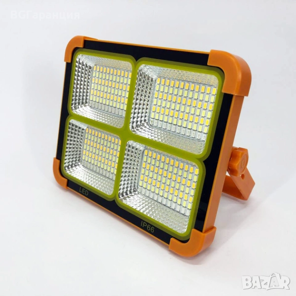 Снабден с четири мощни LED модула, прожекторът осигурява силна и равномерна светлина. Захранва се от вградена акумулаторна батерия, която се зарежда лесно чрез USB кабел (включен в комплекта).