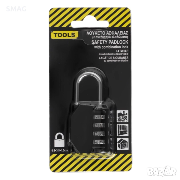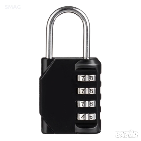 Метален катинар с 4-цифрена комбинация за сигурно заключване без нужда от ключ. Подходящ за защита на шкафове, врати, куфари, мазета или багаж по време на пътуване. Компактният размер и здравата конструкция осигуряват надеждна защита и удобство при употреба.