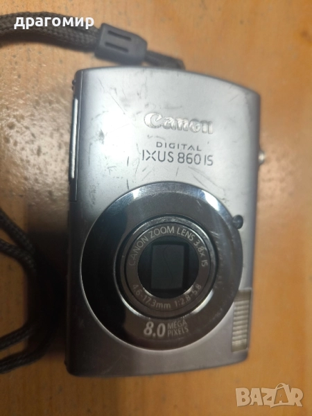 продавам компактен цифров фотоапарат, Canon IXUS 860 IS,с кожен калъф от естествена кожа,фотоапарата има много драскотини видно на снимките,но работи безупречно,има карта, батерия и зарядно устройство, имам още много други фотоапарати, камери, обективи, чанти, светкавици, батерии, зарядни устройства, касети, филтри, ремъци, ленти, при закупуване на повече неща отстъпка