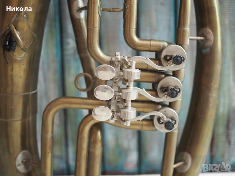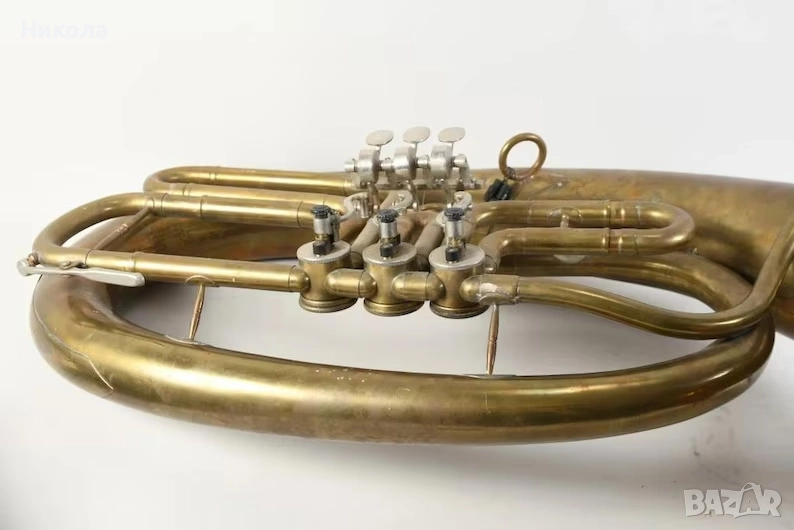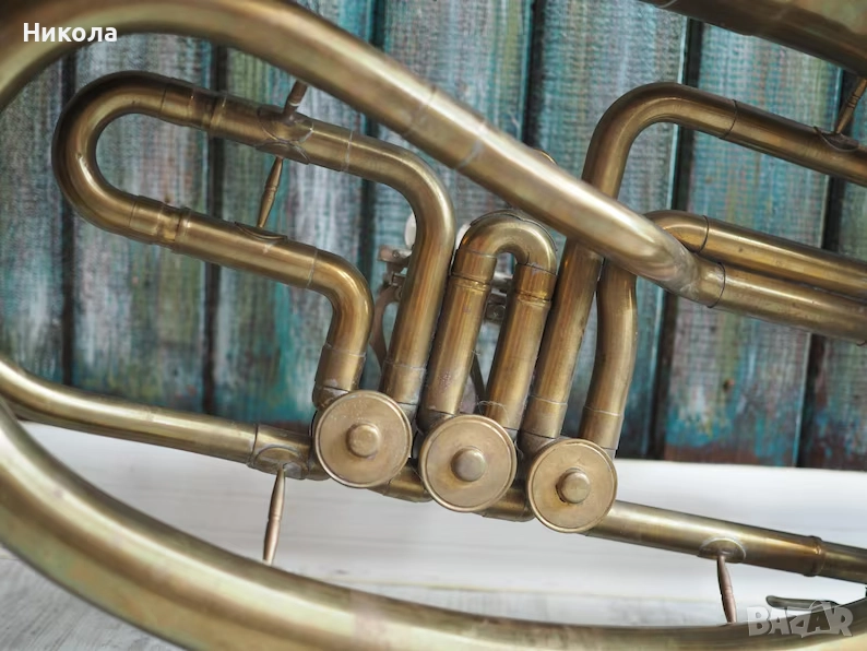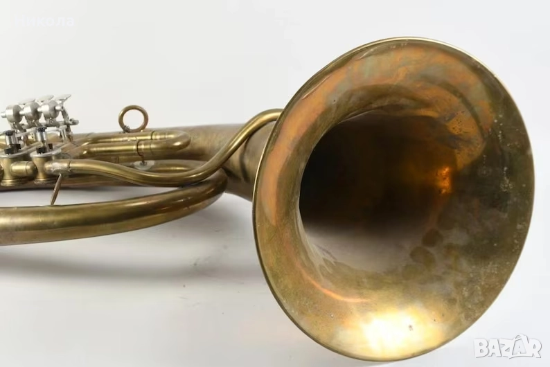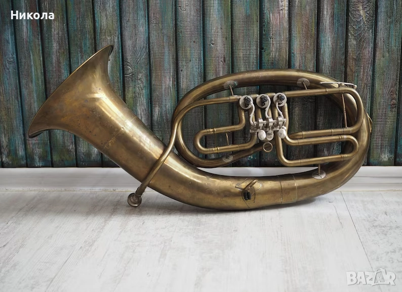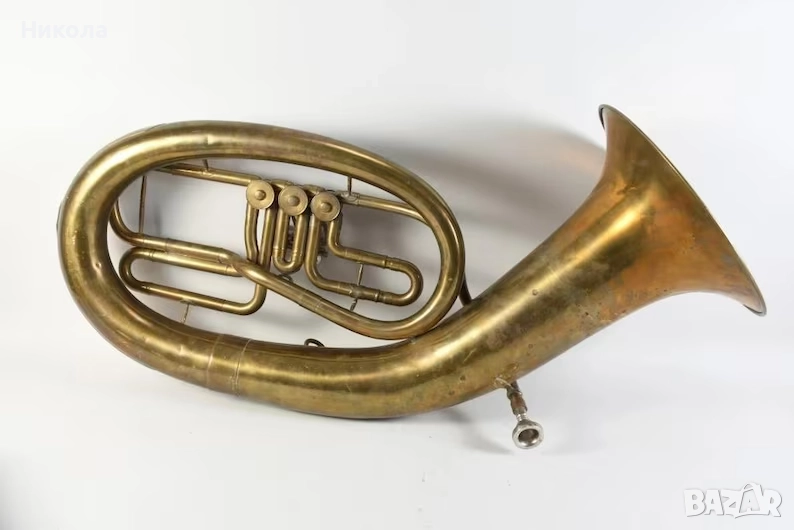 Продавам старинен месингов хеликон с роторни клапани, използван в миналото в маршови и военни оркестри. Изключително красив и впечатляващ предмет с автентична патина и характерна спираловидна форма – подходящ както за колекция, така и за декорация или театрален реквизит.