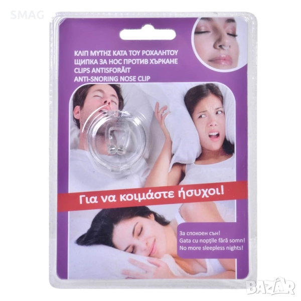 Ефективна щипка за нос, която подпомага свободното дишане по време на сън, като разширява носните проходи и намалява хъркането. Подобрява качеството на съня и улеснява дишането през носа вместо през устата. Компактна, хигиенична и лесна за употреба.
