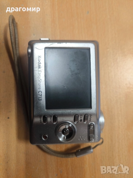 продавам компактен цифров фотоапарат, работи, Kodak Easy Share C713,има карта, работи с две батерии АА по 1, 5 v, имам още много други фотоапарати, камери, обективи, чанти, светкавици, батерии, зарядни устройства, касети, филтри, ремъци, ленти, при закупуване на повече неща отстъпка