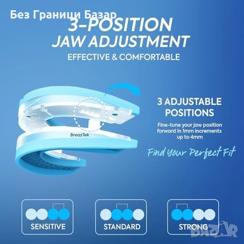 Уред срещу хъркане с регулируема позиция – 3 степени за оптимален комфорт