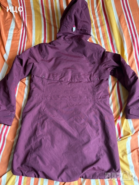 Отлично състояние и интересен модел. С различни джобове, закопчаване с цип и копчета. С ластици на качулката. 100% waterprof. Дължина 82см. Широчина 50см. Дължина от подмишници до края на ръкава 48. Размер 38. Цена 85лв.