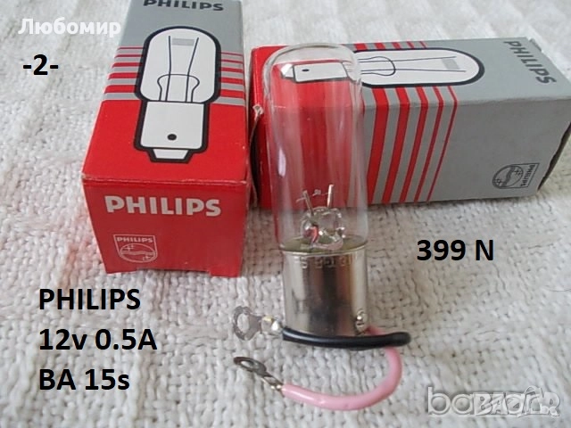 2. 12v 0.5A Ba15s PHILIPS 399N - неизползвано - 4 бр. х 15 лв.