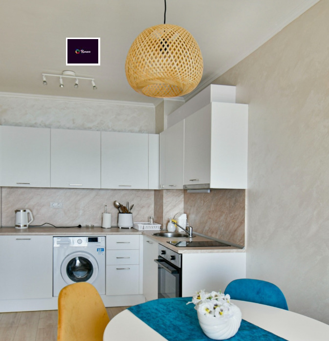Жилището е напълно обзаведено и оборудвано с нови, модерни уреди и мебели, както и климатик от висок клас.