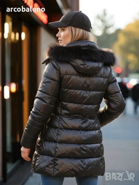 Дамско зимно ватирано яке с косъм SHINE
