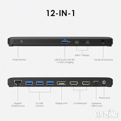 Нов USB-C 12 в 1 док станция, 8K DP, Dual 4K HDMI, Ethernet, 130W PD