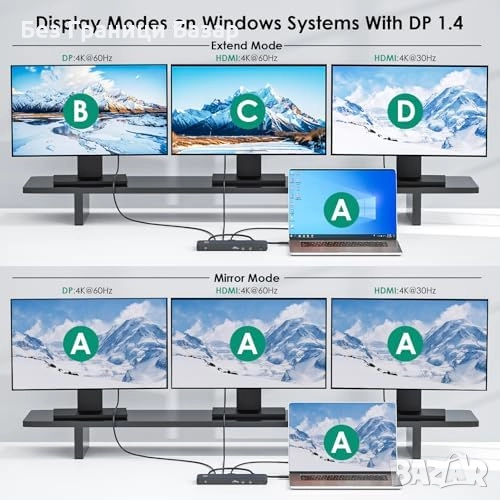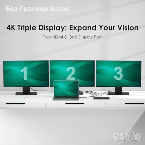 Тройно свързване на монитори: до 8K/4K висока резолюция за Windows и Mac