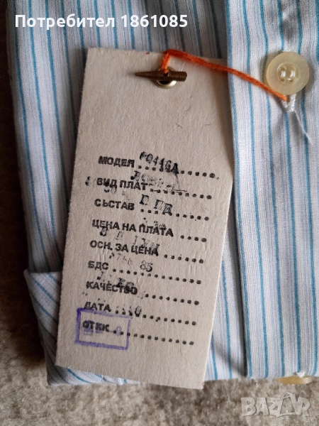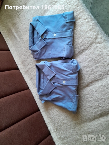 Нови български мъжки ризи с етикети от соца. качествени платове и качествена изработка. Ризите са с размер на яката -44 - 45, по-светлата е с размер на яката - 41. на снимките се виждат етикетите, така че друга информация е оттам.