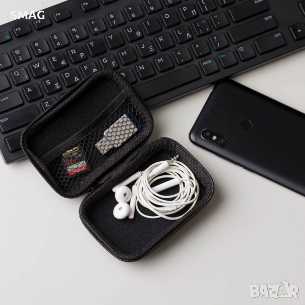 Компактен калъф за съхранение на дребни предмети с цип, идеален за пътувания, офиса или ежедневна употреба. Подходящ за кабели, бижута, козметика или други малки аксесоари. Лек и удобен за носене в чанта или куфар.