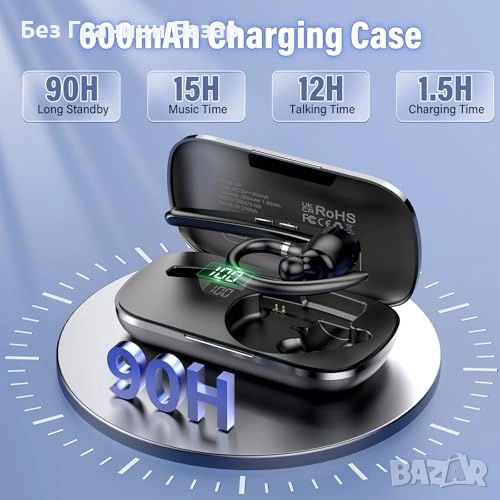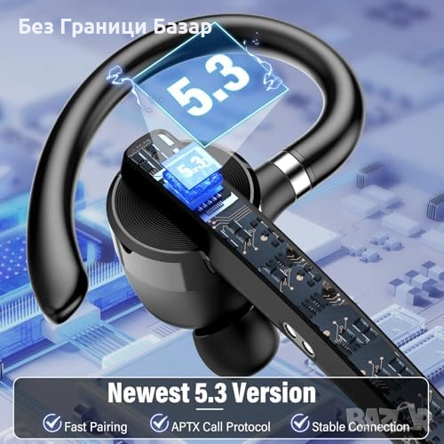 Нова Bluetooth 5.3 слушалка с Dual Mic, шумопотискане и 90 часа работа за спорт офис