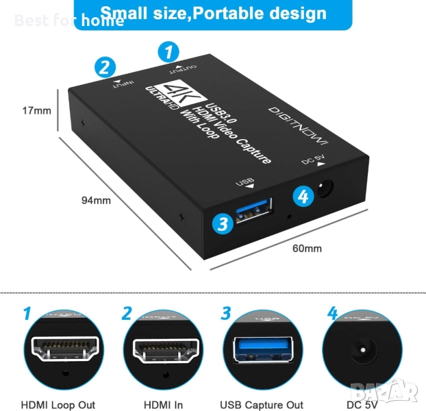 Plug and Play: Лесен за употреба. Не се изисква драйвер, външно захранване, компактен и преносим. Просто свържете вашите HDMI устройства към вашия компютър или Mac за лесен запис. Идеален за предавания на живо, конферентни зали, видеозапис и др.
