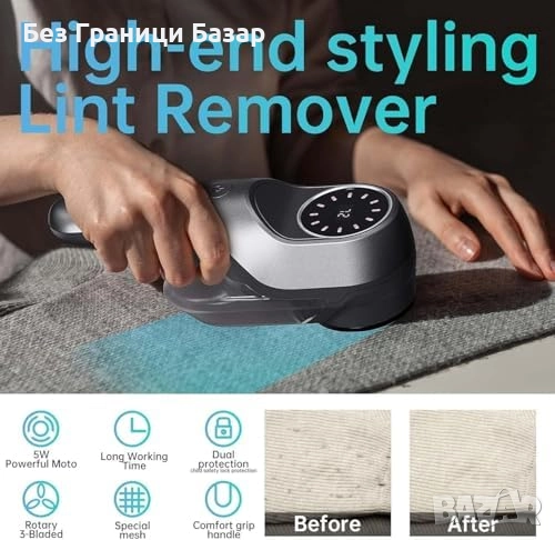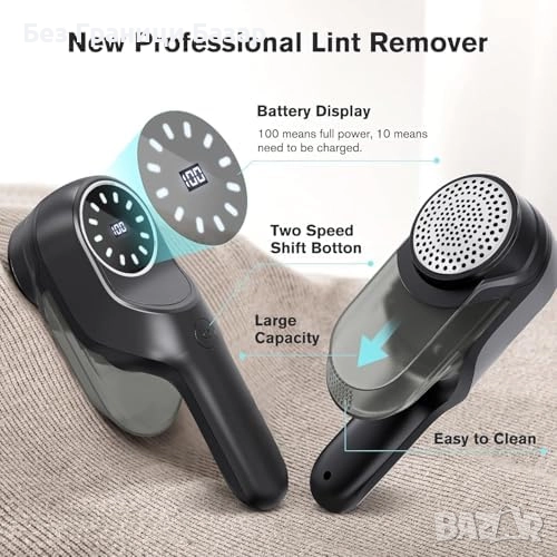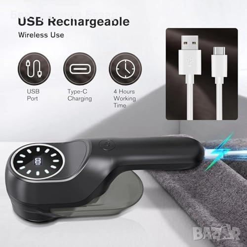Нов Електрически премахвач на мъх 9W, USB-C, LED дисплей, 2 скорости
