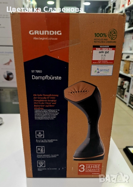 Парна ютия Grundig ST7950, LCD екран, Метални плочи, Вертикално или хоризонтално използване, Черна
