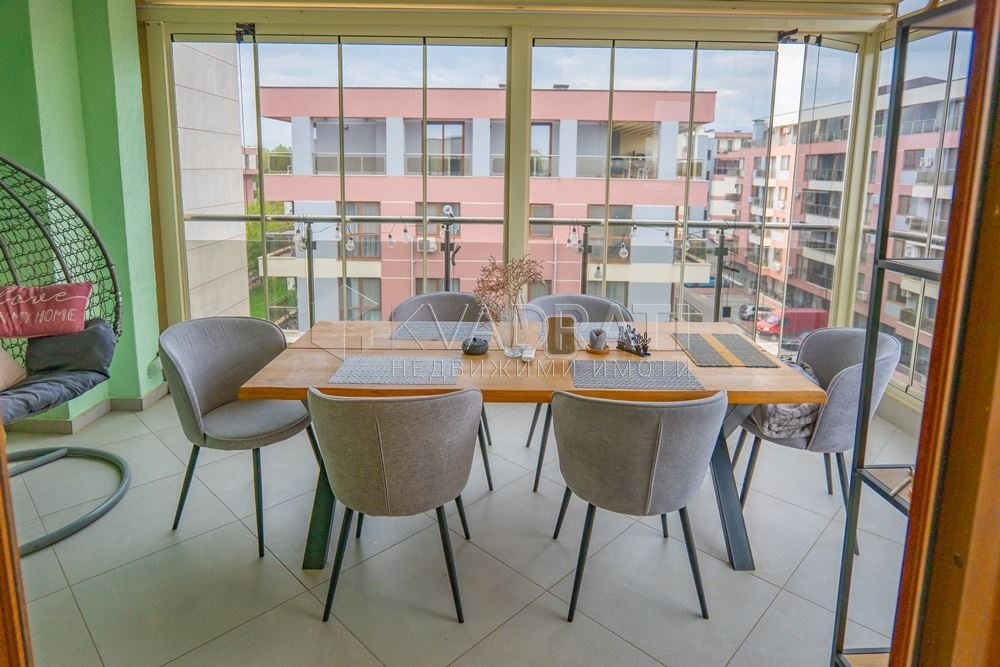 Оферта 4587: Агенция КВАДРАТИ предлага прекрасен тристаен апартамент в комплекс Марица Гардънс . Жилището е много светло, с площ от 136кв.м, разпределени по следния начин: слънчев южен хол с кухненски бокс, две големи самостоятелни спални на север / едната със самостоятелна баня с тоалетна/, втора баня с тоалетна, голяма тераса, безпрофилно остъклена и покрита с осветена пергола. Завършено е с качествени материали, красиво обзаведено и обурудвано с висок клас електроуреди. Към него има избено помещение и допълнително може да се закупи надземно паркомясто. Комплексът е от затворен тип, спокоен и много добре поддържан, с денонощна охрана, голямо отстояние между сградите и много зелени площи. Разполага с два хранителни магазина. В близост е до Езиковите гимназии, новата база на Пловдивски университет, Окръжна болница, с добре уреден транспорт. Отличен избор за семейства с деца, както и за инвестиция за отдаване под наем. За повече подробности и контакти: Тоня Минчева 0886758787
