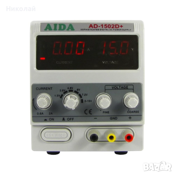 Захранващ блок AIDA AD-1502D+ (15V, 2A, цифров дисплей, RF индикатор, автоматично възстановяване)