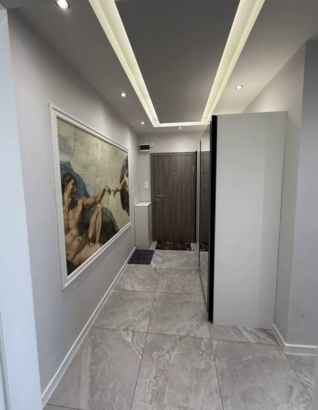 Имотът се предлага напълно обзаведен с чисто нови електроуреди и мебели. Разполага с площ от 50 кв.м / входно антре, всекиндневна с кухненски бокс, спалня и баня с тоалетна. Намира се на четвърти жилищен етаж и се отоплява на електричество.