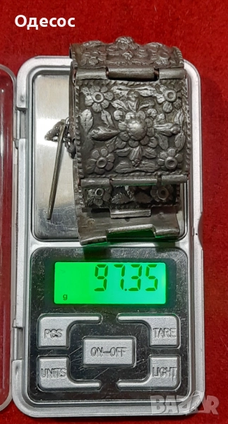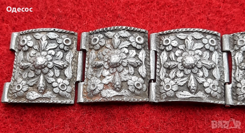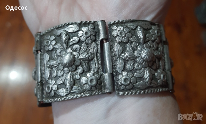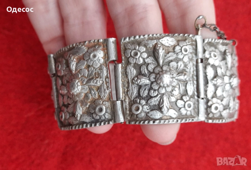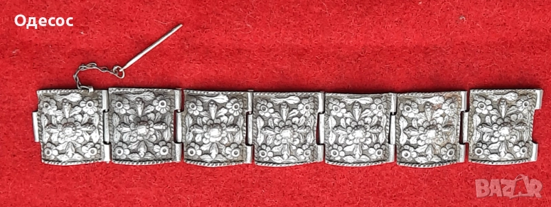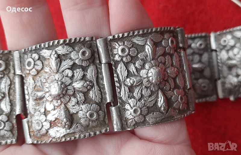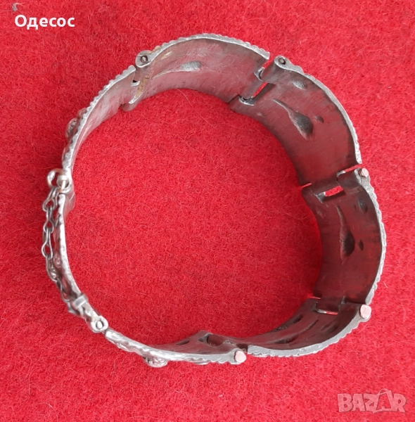 Рядка възрожденска масивна сребърна гривна. Дължина 21 см,широка е 3.4 см ,ф 7 см.
