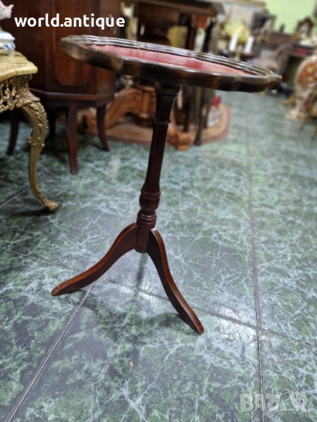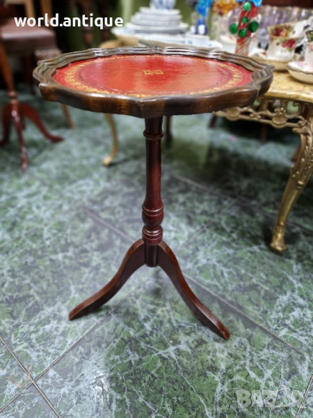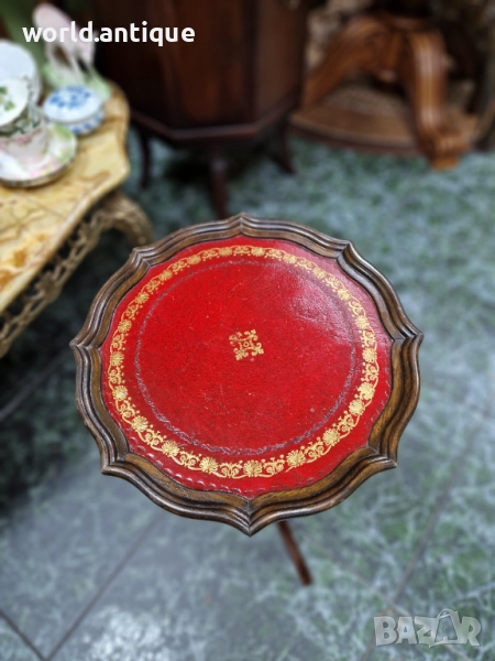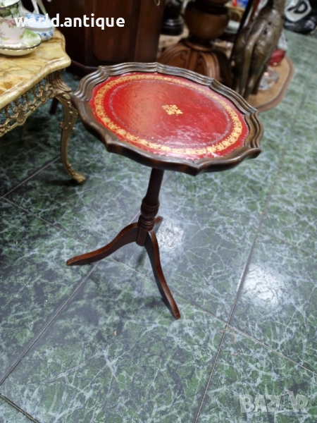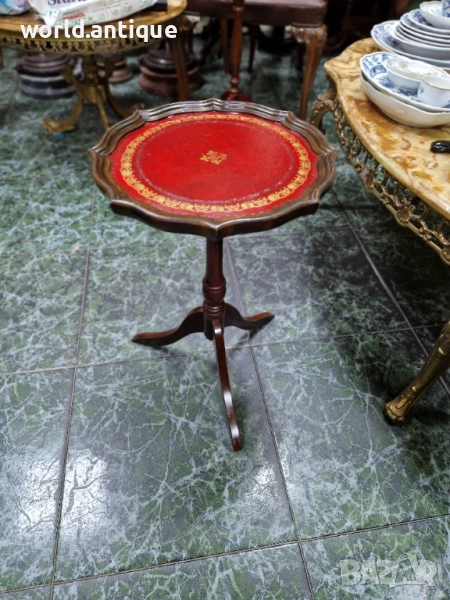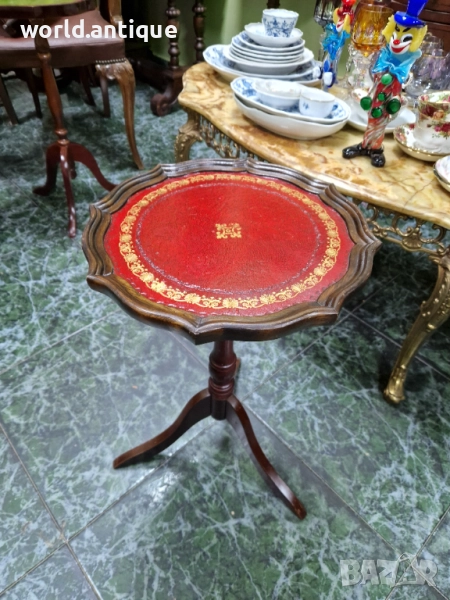 Продавам страхотна много красива антикварна английска помощна масичка масив с кожа в перфектно състояние без никакви забележки. Височина 54 см диаметър 34 см. Чудесно допълнение към интериора на Вашия дом офис вила ресторант хотел. Подходяща и за подарък. Работя с всички куриери. Отговарям бързо.