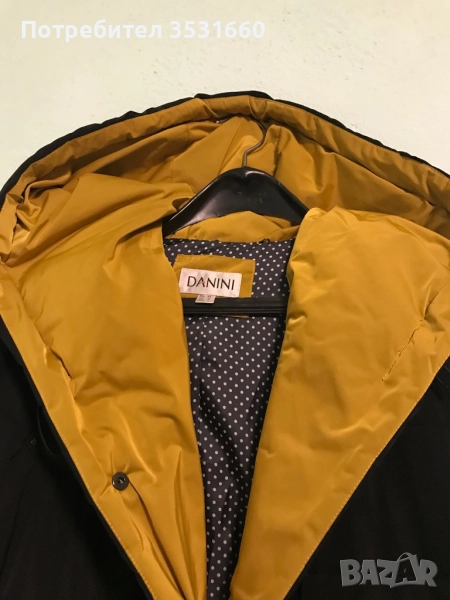 Дамското дълго зимно яке ( тип шуба- вталена) Номер 42, марка “DANINI”, с дължина - 110 см. , гръдна обиколка- 86 см., д-на на ръкава -60 см. в черен цвят е стилно и функционално облекло за студените дни.