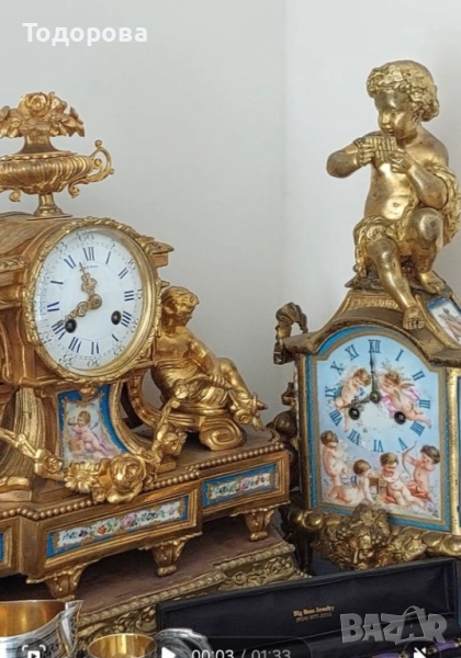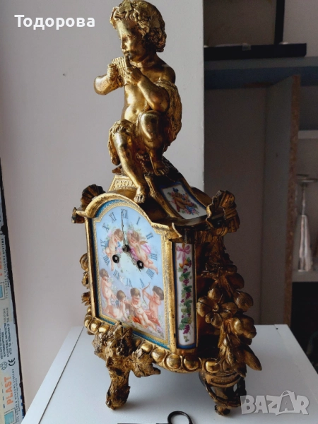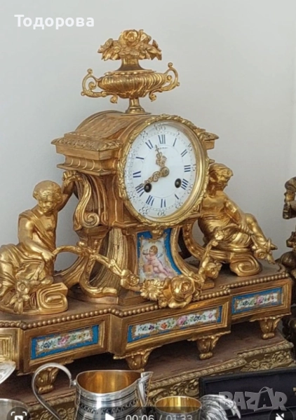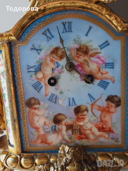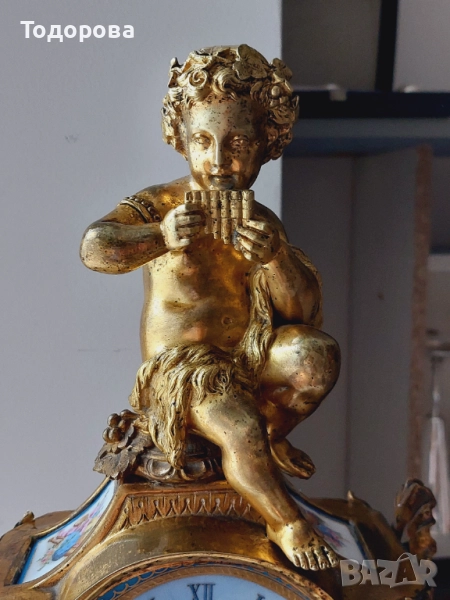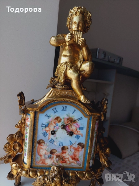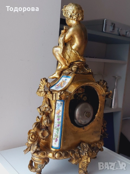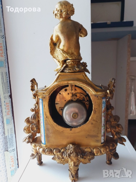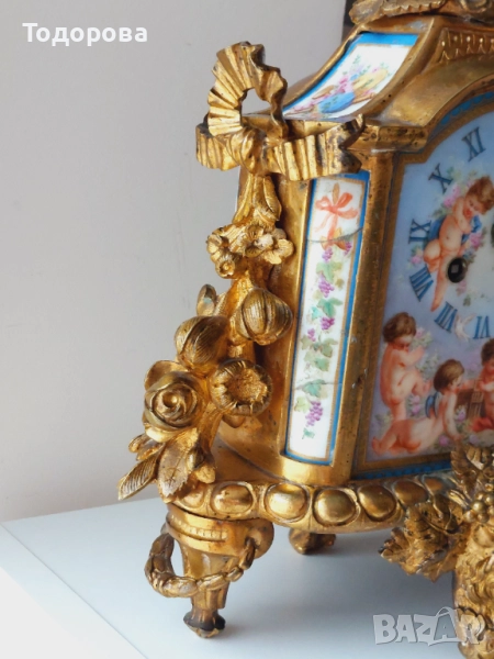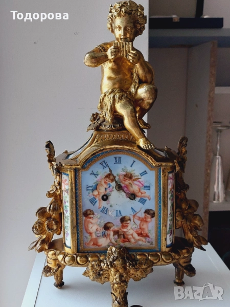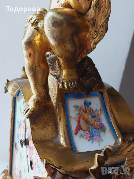 Много рядък Каминен бронзов часовник-Франция 19 век ,позлата, порцелан, 4 200 € → Обява 52310498