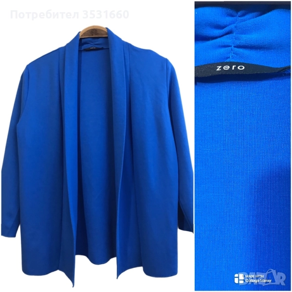 Елегантно дамско сако от луксозно трико в цвят синьо, марка ZERO.
