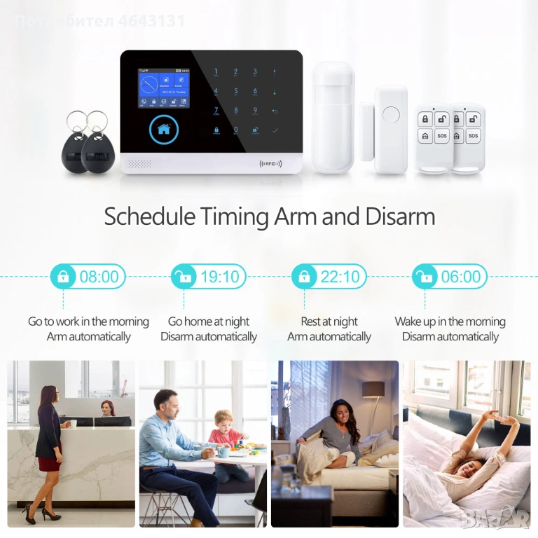 -Смарт контрол и таймер за включване/изключване в определен ден/час на алармената система;