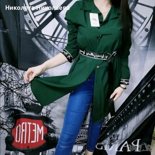 Дамска дълга риза с коланче, подходяща за повод и ежедневно облекло.